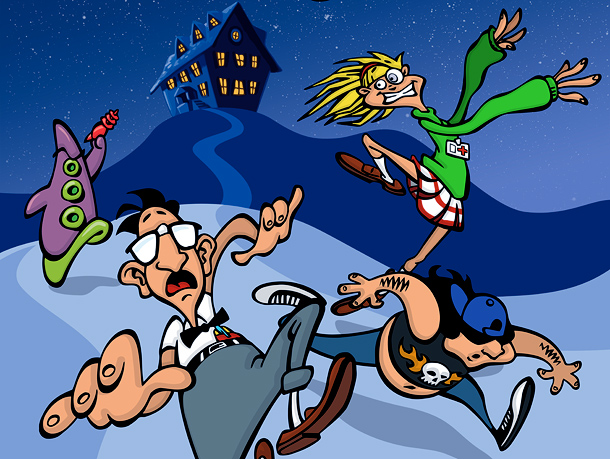 This time around you play three new kids, but you didn’t have the same choice in whom you take with you. The three kids are Bernard Bernoulli, the nerd, Laverne, the medical student and Hoagie, the Megadeath lover. The game takes place back in the mansion, but the game does it in a new way both in style and substance. The Purple Tentacle was accidentally mutated by industrial sludge in the backyard of the mansion. The kids are going in to the mansion to save the two tentacles from Dr. Fred, who is bent on killing them both. You then find out that the Purple Tentacle has grown arms and is mad with power, and by releasing Purple Tentacle you’ve started the end of human existence.